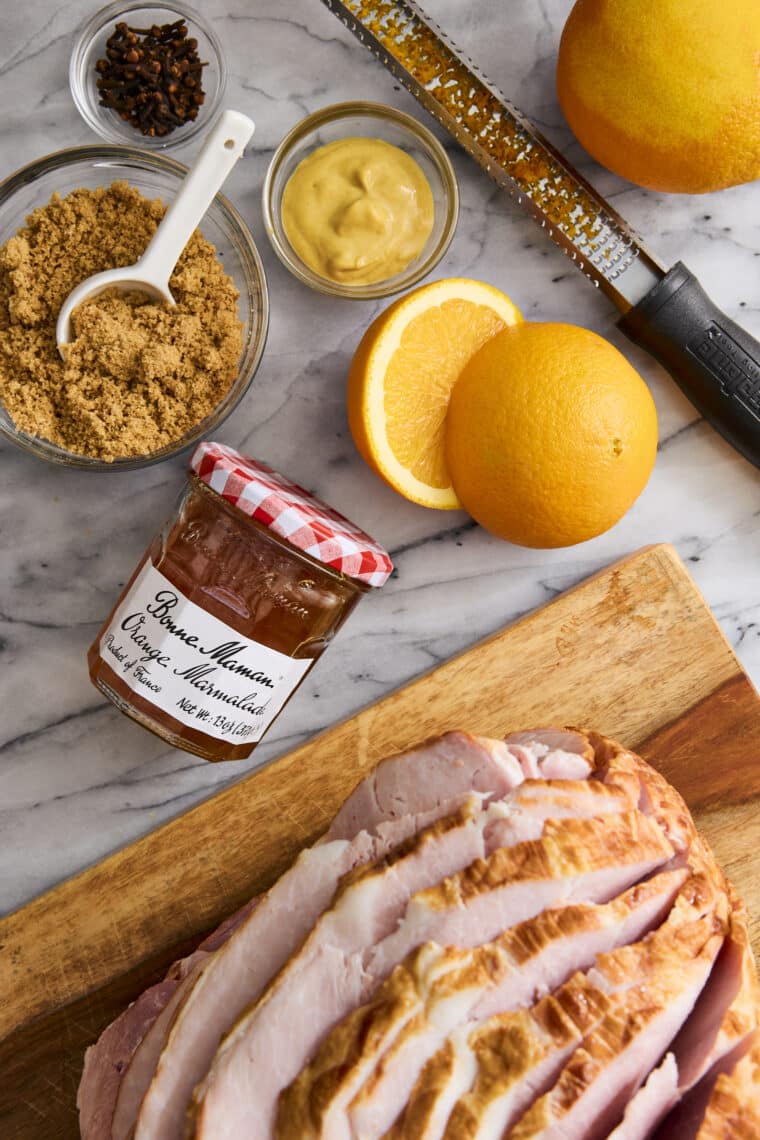- Pour orange marmalade mixture over ham.